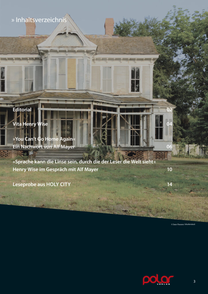 In der Polar Gazette No. 26/01 stellen wir Ihnen Henry Wise mit dem Krimi „Holy City“, der am 12.01.26 erscheint, vor. In unserem Magazin finden Sie Porträts, Leseproben, Interviews mit Autoren und alles Wissenswerte rund um das Buch.